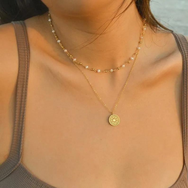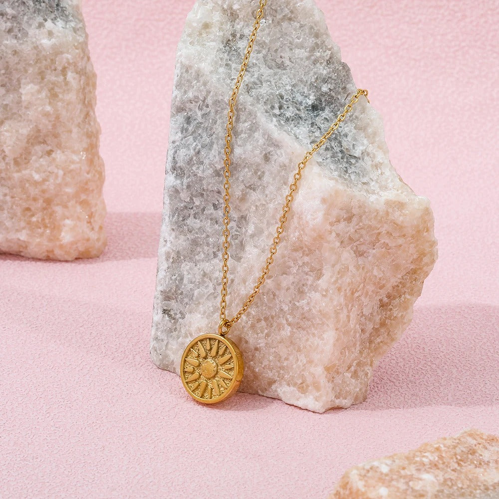 Le Collier Pendentif Soleil Doré est un bijou qui incarne l'éclat doré du soleil !